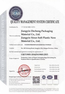 Jiangyin Decheng Packaging Materials Co., Ltd., размешчаны ў эканамічна яркім горадзе Цзянгіін, правінцыя Цзянсу, з'яўляецца прафесійнай гнуткай упакоўкай кампаніі, якая спецыялізуецца на навукова -даследчых работ, нарэзання і вырабу сумкі. З некалькімі сучаснымі гнуткімі вытворчымі лініямі ўпакоўкі мы забяспечваем прафесійныя, адзіныя гнуткія ўпаковачныя рашэнні.